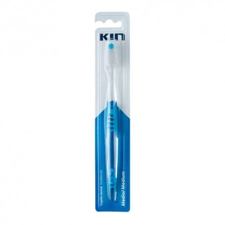 Brosse à dents Kin moyenne Cette brosse à dents est dotée de poils de dureté moyenne qui nettoient en douceur les dents et les gencives. Elle est idéale pour une hygiène bucco-dentaire quotidienne. Sa tête triangulaire permet d'atteindre facilement tous les recoins de la bouche.
